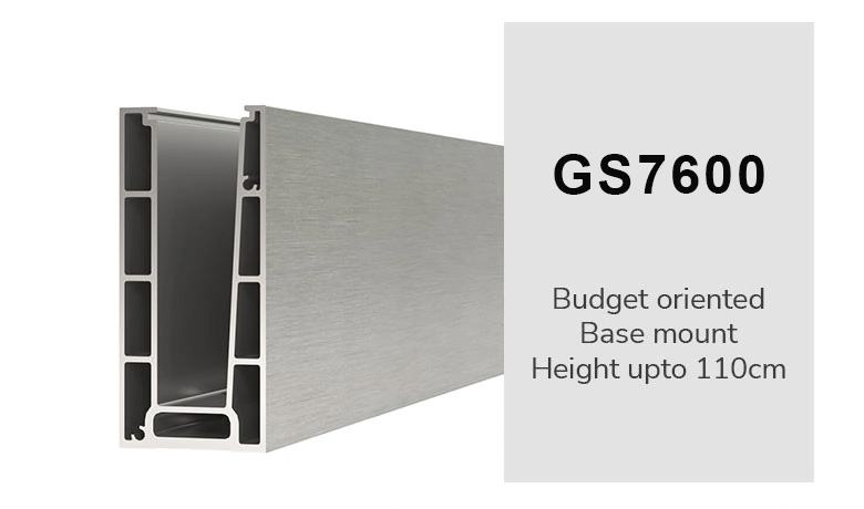 GS7600 este cea mai recentă balustradă din sticlă proiectată de inginerii noștri pentru montaj superior. Acest sistem orientat către buget oferă o finisare elegantă, instalare ușoară și necesită întreținere minimă. Sticla este fixată în câteva secunde cu ajutorul călușelor și uneltei de inserare a călușelor. Puteți fi sigur că, chiar și după utilizare intensivă, sistemul își va menține integritatea.